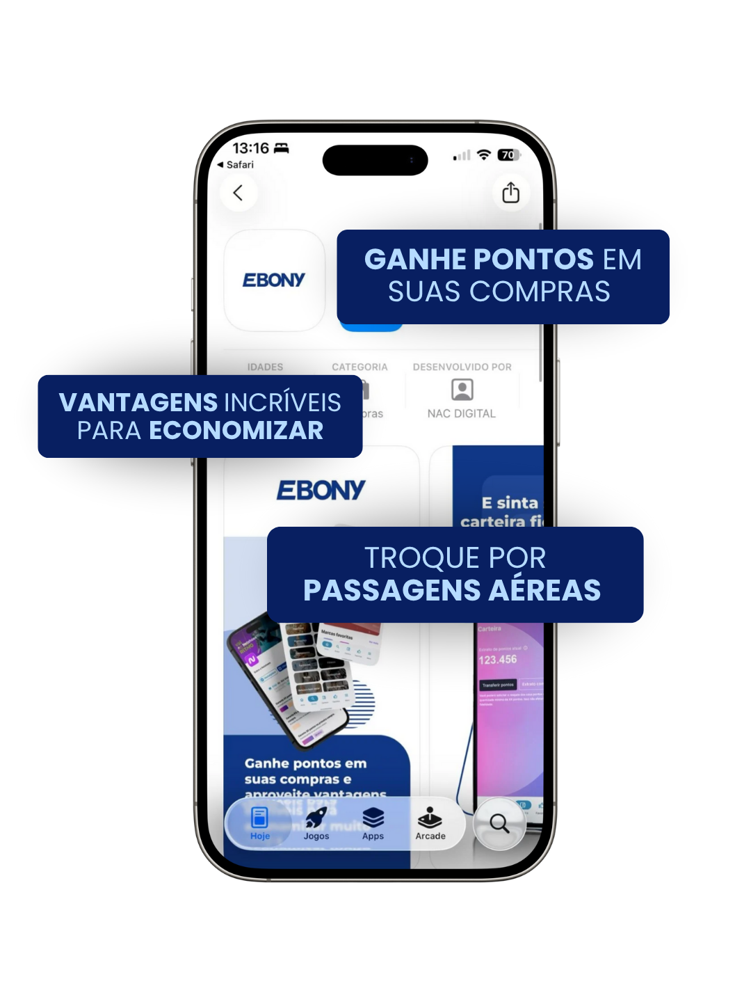 A cada operação concluída com a Ebony, você ganha pontos automaticamente.